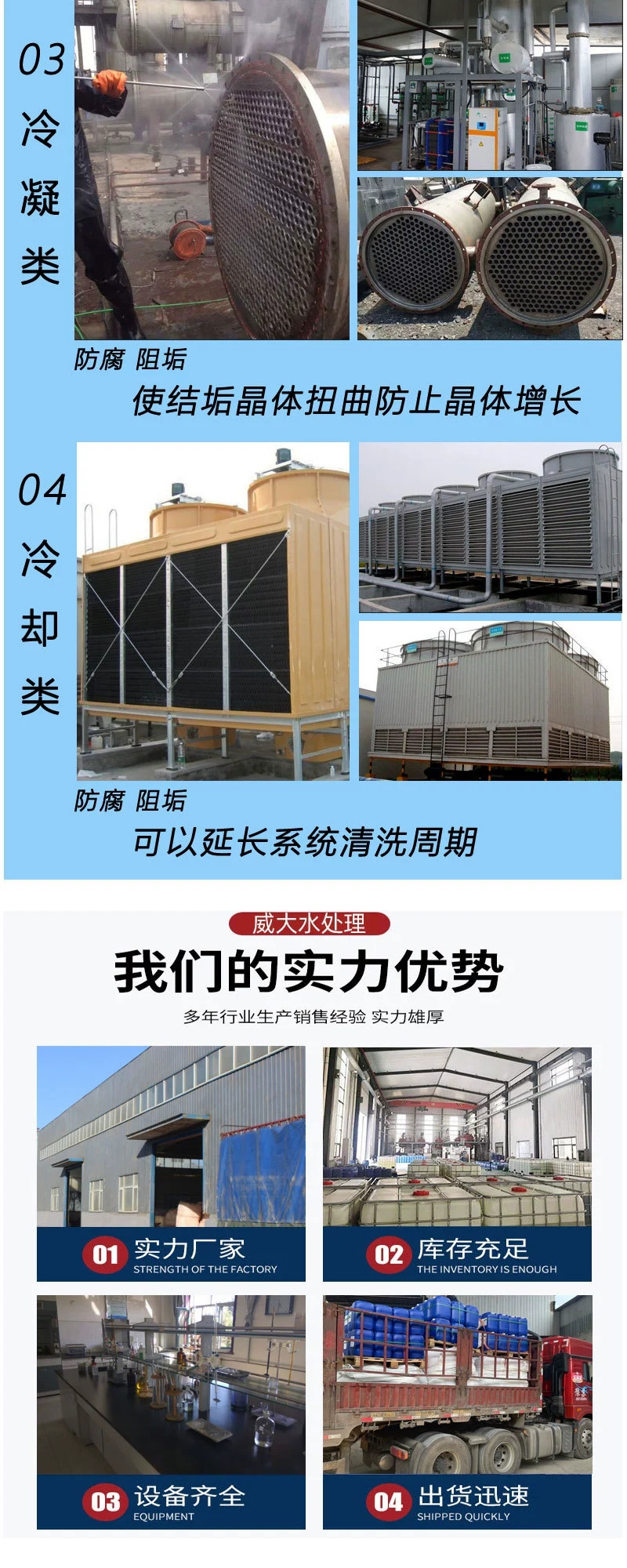 與君相遇絕非偶然,20年專注產(chǎn)品生產(chǎn),11年電商經(jīng)驗,終于在眾多廠家中脫穎而出, 鄭州威大水處理材料有限公司是一家集科研、生產(chǎn)銷售阻垢劑、殺菌劑、水處理藥劑等產(chǎn)品代加工為主導的企業(yè)。 公司有反應(yīng)釜攪拌灌裝生產(chǎn)線,可為各企業(yè)提供貼牌加工各種藥劑產(chǎn)品! 水處理藥劑代加工,循環(huán)水阻垢緩蝕劑、反滲透阻垢、分散劑、非氧化殺菌劑。我們主要代加工阻垢緩蝕劑,清洗除垢劑,殺菌滅藻劑,黏泥剝離劑,反滲透的阻垢分散劑,非氧化殺菌劑,清洗劑,還原劑,活性炭,聚丙烯酰胺,聚合氯化鋁等水處理藥劑,品類齊全。本廠技術(shù)力量雄厚、設(shè)備精良、工藝先進,產(chǎn)品多次受到新老客戶的一致好評。